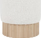 Indulge in the luxurious texture of the Veranda Boucle Fabric Ottoman/Stool. It boasts a rich boucle fabric that is paired with an elegant and sturdy solid wood base, featuring a natural finish that highlights the beautiful wood grain patterns. This unique combination of materials creates a perfect blend of style and durability, making it an ideal addition to any modern or traditional interior design.