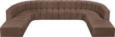 Unleash modern opulence with the Arc Vegan Leather Modular Sofa. Crafted for the modern connoisseur, this sofa injects an air of refined luxury into any space. Its sleek silhouette, upholstered in supple vegan leather, exudes timeless sophistication while the deep channel tufting adds textural intrigue, further elevating the chair's visual appeal. The modular design makes it a versatile chameleon, effortlessly adapting to your evolving needs and preferences. Whether you envision it gracing a chic living room corner, basking in the glow of a bedroom window, or adding a touch of drama to a home office, the Arc seamlessly complements your unique interior aesthetic.