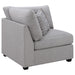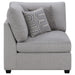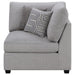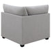 This corner chair enhances any modern living space with its clean design and modular flexibility. Upholstered in soft grey fabric, it features plush reversible cushions with feather-down wrapping for lasting comfort. Perfect for use as a standalone accent or combined with matching modular components, this chair allows for a fully customizable sectional configuration. Solid wood legs and a durable frame ensure stability, while its neutral tone complements both minimalist and colorful interiors with ease.