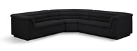 Give your room a much-needed rehab when you bring home this Cascade boucle fabric modular sectional. The elegantly attention-grabbing design features a modern profile with curved arms deep horizontal channel tufting, so it wows from all angles. Upholstered in rich boucle fabric, this seat quickly becomes everyone's favorite spot for curling up with a good book or smart device. Thick foam padding ensures a cozy, body-hugging experience while you watch TV or just relax.