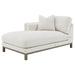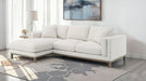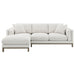Indulge in the inviting comfort of this modern sectional sofa, thoughtfully designed with a left side chaise to accommodate your personal lounging preferences. Upholstered in a soft, textured fabric, complemented with a solid wood pedestal base in ash brown, creating the perfect stylish seating foundation. Fulling encased engineered wood frame, sinuous spring seating and foam combined with premium blend fill create a plush, resilient feel. Complete with reversible back cushions, reversible single cushions, removable chaise cushion and coordinating accent pillows, this sectional becomes the stylish focal point of a welcoming, contemporary living room.
