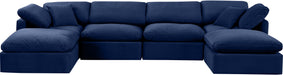 Indulge - Velvet 6 Piece Modular Double Chaise Sectional - Blue