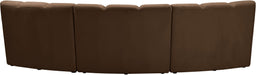 Create a seating group that works for every possible situation with this Infinity modular sofa and other pieces in the Infinity collection. Upholstered in soft Brown velvet material that feels great against the skin and offers long-wearing beauty, this piece fits with other Infinity items for an infinite number of combinations that get your seating requirements just right but that look just as nice when used on their own.