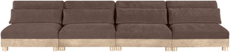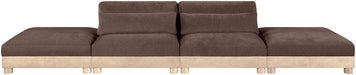 Turin - 160" Chenille Fabric Upholstered 4 Piece Modular Sofa (4 Armless Chairs) - Brown / Natural Oak