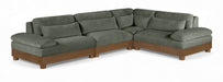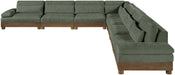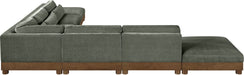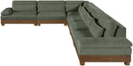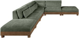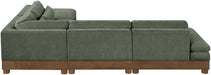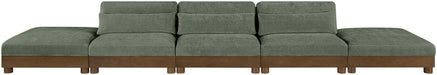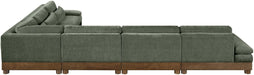 Turin - 200" Chenille Fabric Upholstered 5 Piece Modular Sofa - Green / Brown Walnut