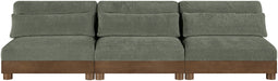 Turin - 120" Chenille Fabric Upholstered 3 Piece Modular Sofa (3 Armless Chairs) - Green / Brown Walnut