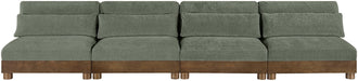 Turin - 160" Chenille Fabric Upholstered 4 Piece Modular Sofa (4 Armless Chairs) - Green / Brown Walnut