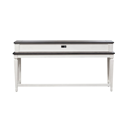Liberty FurnitureBartlett Field - Console Bar TableProduct Features Reeded Textured End Panels Built-In Charging Station w/ 2 Outlets & 2 USB Ports Square Block...