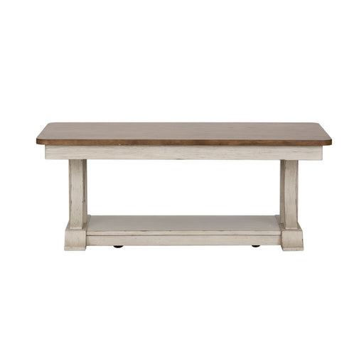 Liberty FurnitureElevate your space with the Modern Farmhouse splay leg cocktail table and splay leg end tables. Crafted of poplar solids with knotty white oak vene...