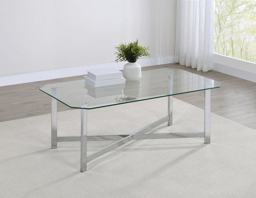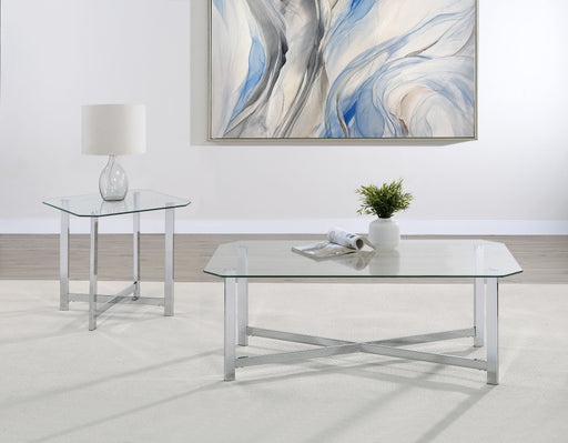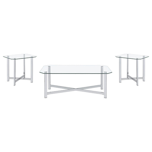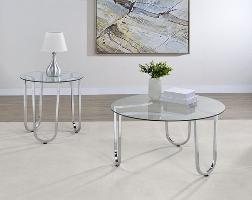 CoasterThree-piece coffee table set with round tempered clear glass tops delivers a cohesive contemporary foundation for living rooms. Chrome metal frames...