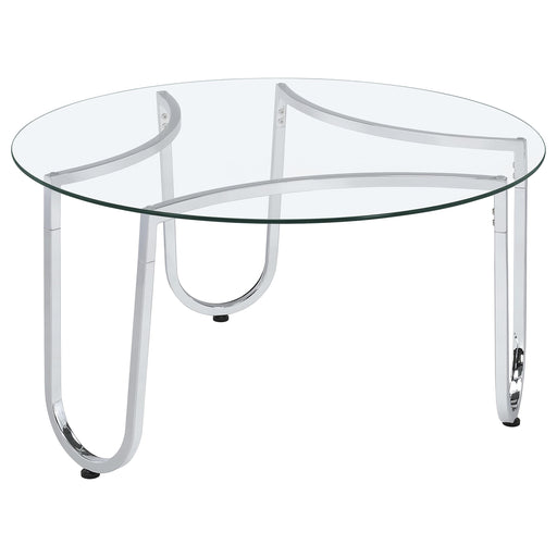 CoasterTwo-piece coffee table set with round tempered clear glass tops creates a coordinated contemporary look for living spaces. Chrome metal frames supp...