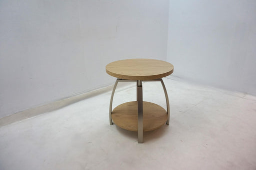 CoasterRound end table pairs a clean circular top with an open lower shelf for a light modern profile beside a sofa or chair. Curved electroplated metal l...