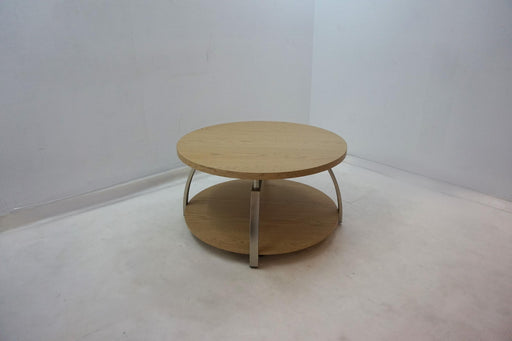 CoasterRound coffee table brings a clean two-tier silhouette to the center of the room with a broad top and open shelf below. Curved electroplated metal l...