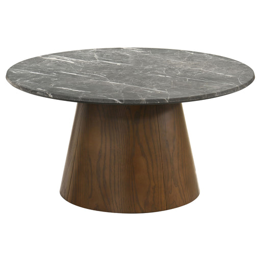 Coaster36-inch round pedestal coffee table anchors a seating area with a bold, center surface for daily use. Constructed from engineered wood and plywood ...