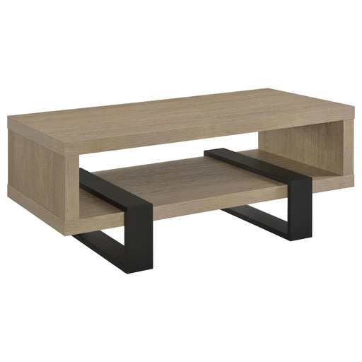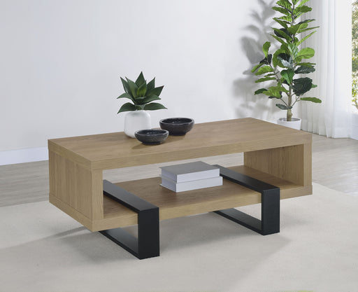 CoasterCoffee table with two drawers and open storage keeps a living room surface clear while adding room for essentials. Center drawers with black hardwa...