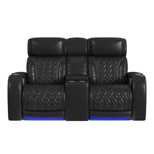 Original price $5,899.00Original price $5,899.00 - Original price $5,899.00Original price $5,899.00Current price $2,499.00$2,499.00 - $2,499.00Current price $2,499.00Prime Time - P3 Sofa With I Table, Reading Light, Heat, Massage, LED, And Speaker - Jett Black With Red Stitching