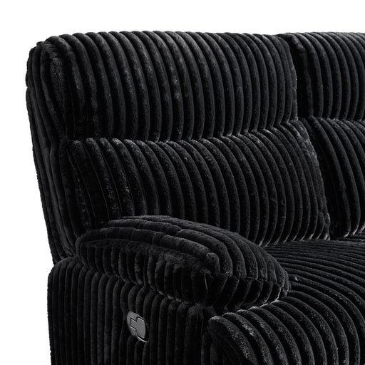 Elements InternationalLet the Admiral Motion Loveseat with Console in Masis Black cradle you in unprecedented comfort. Upholstered in a plush, ribbed fabric and filled w...
