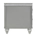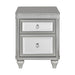 Accent your living space with the glamourous style of the Avril Chairside Table with Power Port. Accented with mirror plates and posh crystal knobs, the two drawers are constructed with skillful dovetailing and ball bearing glides. A convenient power port is implemented to simplify charging electronics and reduce the clutter caused by cables, while bun feet decorated with rhinestones and a glitter trim adorning the table’s perimeter elevate its visual appeal. Designed for those seeking to add an elegant touch of luxury to their space, the Avril Chairside Table with Power Port is just right.