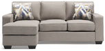 Make your living space that much more livable with this sofa chaise. You—re sure to love its L-shaped design that makes it all too enticing to kick up your heels and relax. The fact that this sofa chaise can be positioned with the chaise on the right or the left only adds to its appeal. And you can rest assured that its ultra-neutral upholstery with a textural chenille feel goes with anything and everything. Wide track armrests, box cushions and tapered feet lend a clean, contemporary aesthetic.