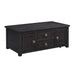 - Coffee Table includes Two Drawers, Two Cabinets, and Hidden Storage under Lift Top