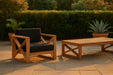 Bring home this Anguilla teak outdoor accent chair to complete the look of your outdoor entertaining area. This resort like accent chair is stylish and comfortable, making it perfect for entertaining or peacefully relaxing in the comfort of nature. Made from teak with a natural finish and water resistant fabric, this chair is resistant to rot and pests, so it weathers the outdoors with ease. Pair the chair with more Anguilla items for a casual and serene look outside.