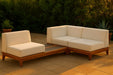 Build the seating group you need for your outdoor entertaining area with one or more selections from the Rio collection including this Rio outdoor water resistant modular sectional. A solid acacia wood frame provides sturdy dependability for this sectional, ensuring its long-lasting performance and impeccable beauty. The plump cushions are encased in resilient water resistant fabric to keep them looking luxuriously beautiful for seasons to come. Attach other units in the collection to this sectional with convenient latches.
