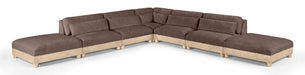 Turin - Chenille Fabric Upholstered 6 Piece RAF Modular Sectional - Brown / Painted Natural
