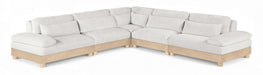 Turin - Chenille Fabric Upholstered 5 Piece RAF Modular Sectional - Cream / Painted Natural