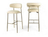 Lupita - Vegan Leather Upholstered Bar Stool (Set of 2) - Cream / Brushed Gold