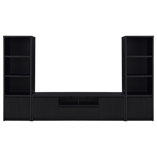CoasterThis modern entertainment center combines a sleek TV stand with two matching media towers, offering style and functionality. Finished in a bold bla...