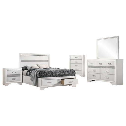 CoasterStylish and ultra-chic, this glamorous, five-piece bedroom set is the ultimate in modern luxury. A bed, nightstand, dresser, mirror, and chest are ...