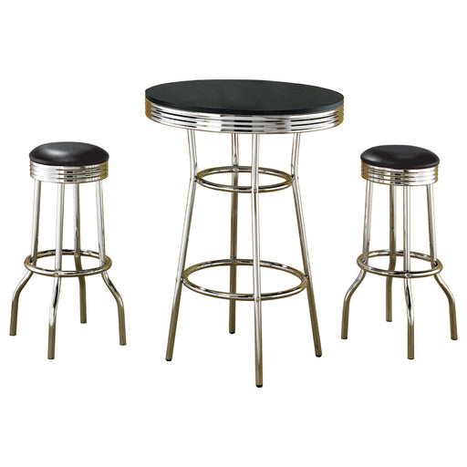 CoasterStep back in time with this exquisite 3-piece pub height bar table set, perfect for adding a touch of retro elegance to any space. The gleaming chr...
