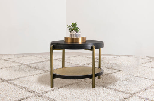 CoasterThis round end table showcases a refined blend of natural and industrial elements, perfect for modern interiors. Crafted from rubberwood, engineere...