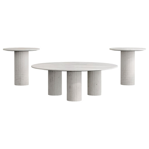 CoasterThis coffee table set, featuring a coffee table and end table, showcases genuine white marble surfaces and cylindrical pedestal bases. The fluted a...