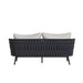Deck your patio with the inviting style of the Bali Loveseat in Dark Grey. Built with high-quality aluminum framing optimal for outdoor use, this piece is as durable as it is cozy. The foam cushions are comfortably upholstered in weather-resistant olefin fabric, and the backrest bolsters visual appeal with its intricate woven detail. Tapered legs add a playful touch to the understated design, while the neutral tones effortlessly enhance the seat’s versatility. For a comfortable and stylish addition to your outdoor décor, the Bali Loveseat in Dark Grey delivers.