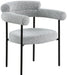 Modernize your dining space with these Blake boucle fabric dining chairs. This pair of contemporary dining chairs features rich boucle fabric, making them comfortable to sit on. Their matte metal frames provide sturdy support so you can relax knowing they ll seat you for years to come. Built to last, these chairs are strong enough for most users. Pair these pretty chairs with your choice of dining table for a custom look.