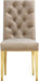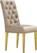 Turn to these Capri velvet dining chairs for a modern look in your contemporary dining space. This chair features a classic parsons design with a slightly slanted back that's button tufted to give it a textural look. The legs are made from stainless steel to give them strength and added support as you sit.