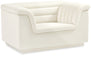 Add instant modern pizzazz to your living room or den with this Cascade velvet fabric chair. Upholstered from top to bottom in soft velvet upholstery, this chic chair adds contemporary flair to any space you choose to use it in. Curved arms and a sleek profile make this chair beautiful to behold while deep channel tufting adds to its long-term durability and adds a textural feel. Thickly padded arms, back and seat make this chair perfect for curling up in while watching TV or reading the latest bestseller.