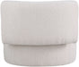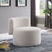Give your home a new conversation piece with this Como cream boucle fabric accent chair. Its contemporary design is sure to catch eyes whenever you have visitors. Its round seat provides a comfortable place to sit, and a curved back allows you to settle back and relax. Its rich cream boucle fabric upholstery paired with a foam cushion makes this accent chair soft, and its wooden frame ensures that this chair will last for years to come.