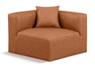 Elevate your space with the luxurious Cube Vegan Leather Corner Chair. This corner chair exudes modern elegance, charm, and comfort making it a perfect addition to any contemporary living space. Its clean lines and cube shape are reminiscent of minimalist design, while the plush cognac vegan leather upholstery adds a touch of luxury and sophistication. The chair's versatile construction and geometric aesthetic seamlessly integrate into various design styles, from sleek living rooms to chic home offices, embodying the essence of modern design and creating a sense of order and tranquility in your space.