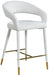 Settle in for a meal with friends seated in this Destiny boucle fabric stool. Soft cream fabric upholstery makes this stool a sleek and inviting option for pairing with your favorite counter table. The rounded back adds comfort to mealtime and lends the stool a chic, eye-grabbing touch, while tapered legs topped with gold tips give the stool an elegant finish.