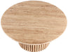 Add a refined look to your room with this handcrafted Genoa coffee table, a stunning masterpiece that marries elegance and practicality. Crafted from genuine travertine, each table is a unique work of art, featuring a travertine top with intricate white veining. The fluted travertine base adds a touch of art deco design, making it a statement piece in any room and adding to its heirloom-quality design.