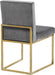 Take dining to a posh new level with this Giselle Dining Chair. A boxy design makes it a nice addition to contemporary spaces, and it's armless design makes it easy to get into and out of with ease. The seat and back are upholstered in rich velvet for a lavish vibe and a pop of sumptuous color to liven up your room, and both are padded well to make sure diners stay comfy while they enjoy their meal.
