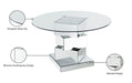 Crank up the contemporary vibe in your space with this Haven Chrome Dining Table. This table has a stacked geometric design featuring multiple squares resting atop each other for a look that wows from every angle. Dinner guests will marvel at the exceptionally modern look of this work of art disguised as a dining table, and you can pair it with your choice of chairs to complete the look. The glass top allows the sculptural quality of the base to shine through, and the base is mirrored for added beauty as it reflects light throughout your room.