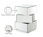 Bring home this Haven coffee table to add a distinctly modern look to your living room or den. This eye-grabbing table from Meridian Furniture features a triple-stacked platform design in a square shape for a geometric look that's more like a piece of fine sculpture than the true utilitarian item it truly is. The surfaces of the table are mirrored, adding a light, airy touch to your space and giving it a beautiful aesthetic in contemporary decor.