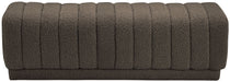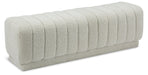 Place this lovely Heathrow ottoman at the foot of your bed or elsewhere to provide impromptu seating when you need it most. This elegant ottoman features rich boucle fabric covering every inch of its exterior, so its soft and welcoming to the touch. Deep channel tufting gives the ottoman texture while adding to its overall durability and longevity. The neutral color makes this ottoman/bench a fitting addition to nearly any space.