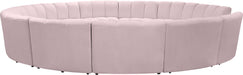 Create a seating group that works for every possible situation with this Infinity 12-piece sectional and other pieces in the Infinity collection. Upholstered in soft velvet material that feels great against the skin and offers long-wearing beauty, this piece fits with other Infinity items for an infinite number of combinations that get your seating requirements just right but that look just as nice when used on their own.
