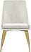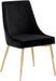Extend contemporary panache to the dining room with this Karina Dining Chair. This dining chair features upholstery in sleek velvet for a modern look and has an armless design for a retro-inspired vibe. The stark color makes it easy to blend in with your existing decor colors or make a contrasting statement with ease. The slanted legs of this chair are finished for added modernity and to provide reliable and durable support while you dine.