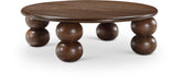 Enjoy the best of both worlds when you bring home this Kelvin coffee table; a handsome medley of traditional lines and modern aesthetics. A large round top gives you plenty of display space or room for setting up a game board, while four stacked double-ball-style legs provide an eye-drawing look to finish out its attractive design. A rich finish on this midcentury modern coffee table gives it an elegant and refined vibe, and solid wood construction ensures its durable and lasting look.