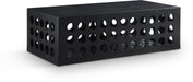 Bring your room to life with the unexpected design of this Kinsley oak coffee table. Part art, part functional item that adds convenience to your space, this coffee table offers a design that instantly commands attention wherever it's used. Multiple cutouts along the sides of this table allow for a fun and unique aesthetic in your room, and its ample top gives you a place to hold magazines, books, remotes, and other items within easy reach of your sofa or couch. A rich finish adds modernity to the table's art deco design.